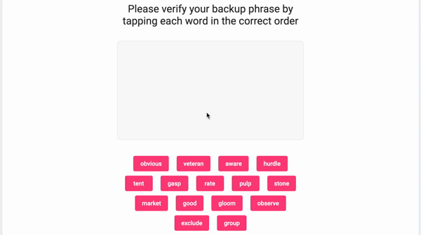 Schreiben Sie sich die 15 Wörter auf und bewahren Sie diese an einem sicheren Ort.